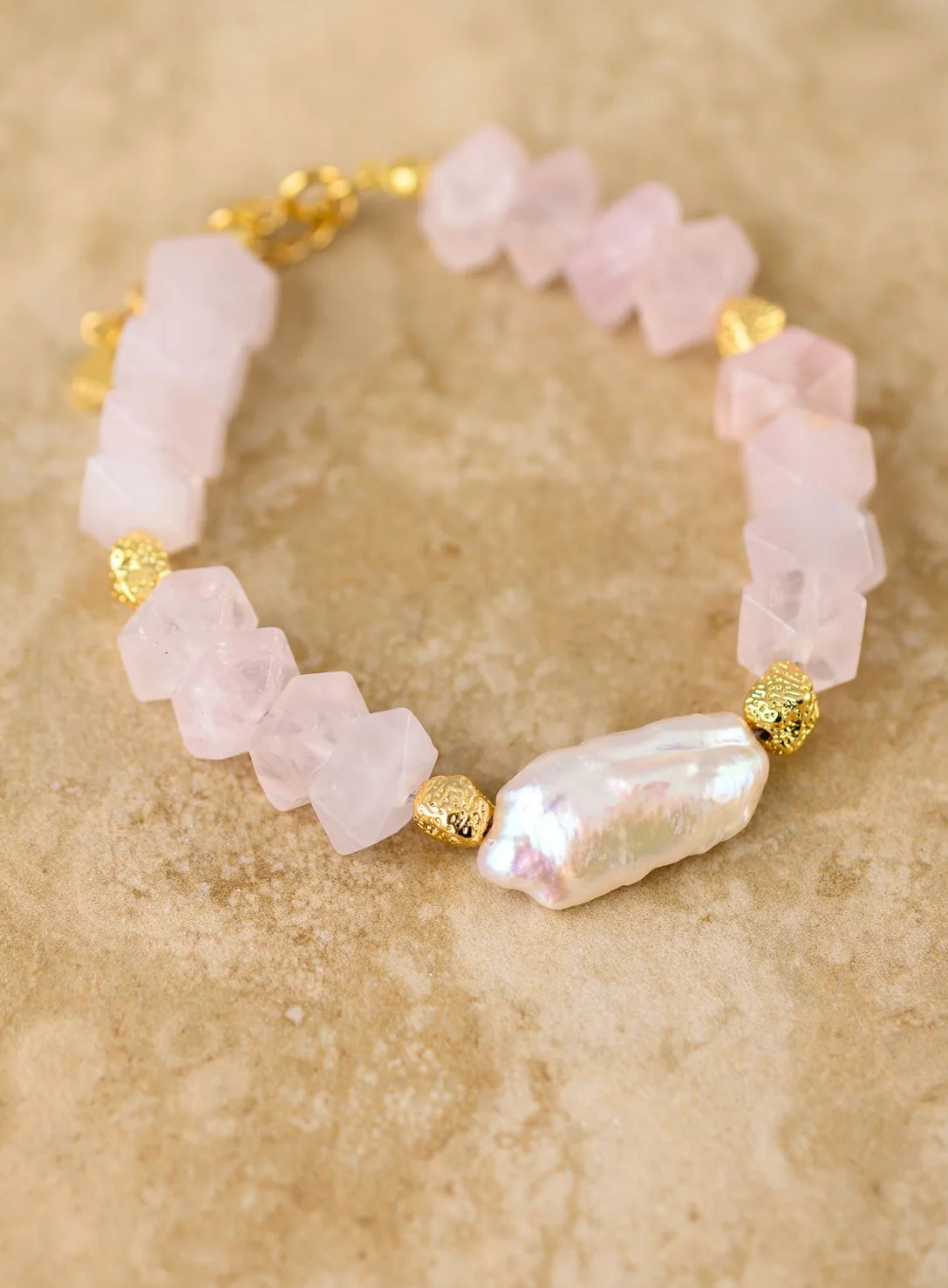 Rose quartz is the stone of unconditional love — believed to open the heart, nurture emotional healing, and restore inner peace. Paired with the organic beauty of baroque pearl, this bracelet is a timeless expression of elegance and intention.