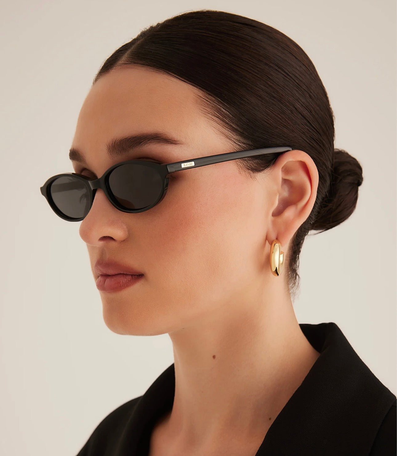 - gold hardware engraved with Banbé logo on outer left arm