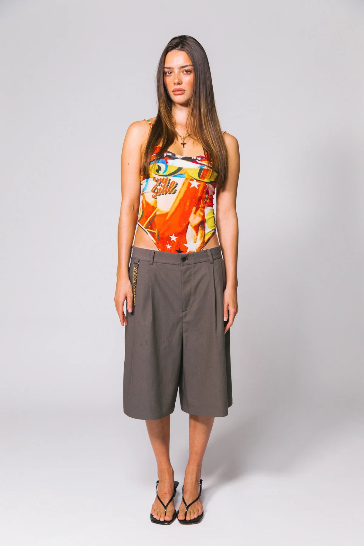 The Charcoal Westwood Pleated Baggy Short delivers a relaxed, tailored silhouette designed to elevate everyday wear. This style features four front pleats for added structure, a stud closure with zip fly, front and back pockets, a contrast inner waistband, silver D-ring detail and a tonal embroidered logo at the waistband.