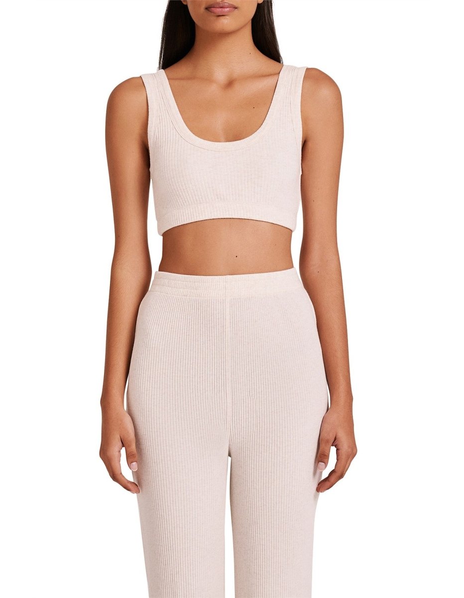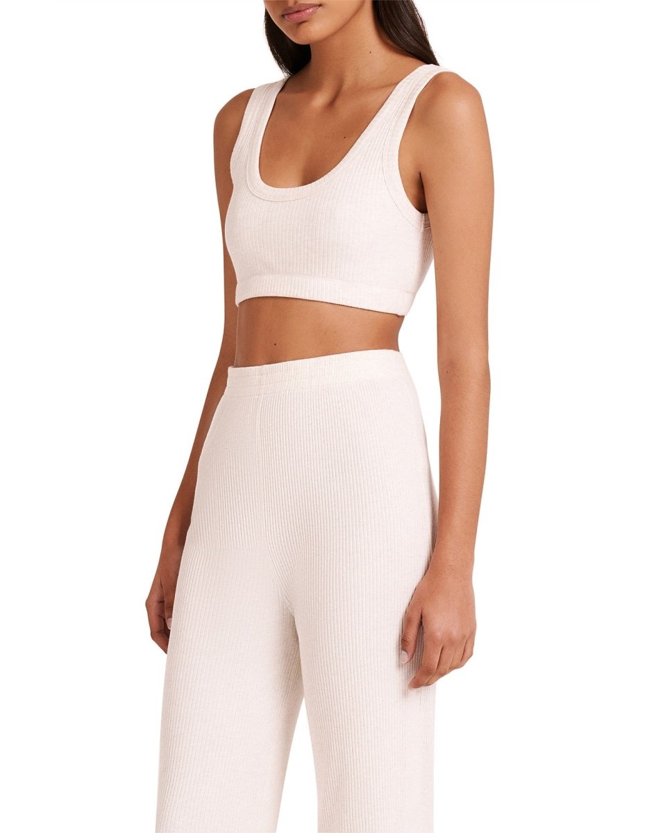 The Lounge Rib Crop is a fitted style constructed in our breathable organic cotton and elastane blend. Features include a scoop neckline, elasticated band at underbust and a Nude Lucy branded label at the back. This crop is double layered for stability, extra coverage and comfort.