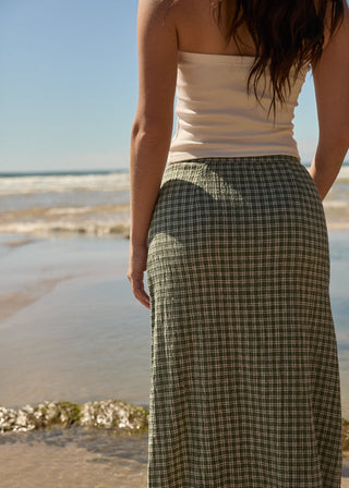 Base Seersucker Maxi Skirt - Deep Green Check