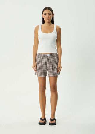 Base Seersucker Boxer Short - Coffee Check