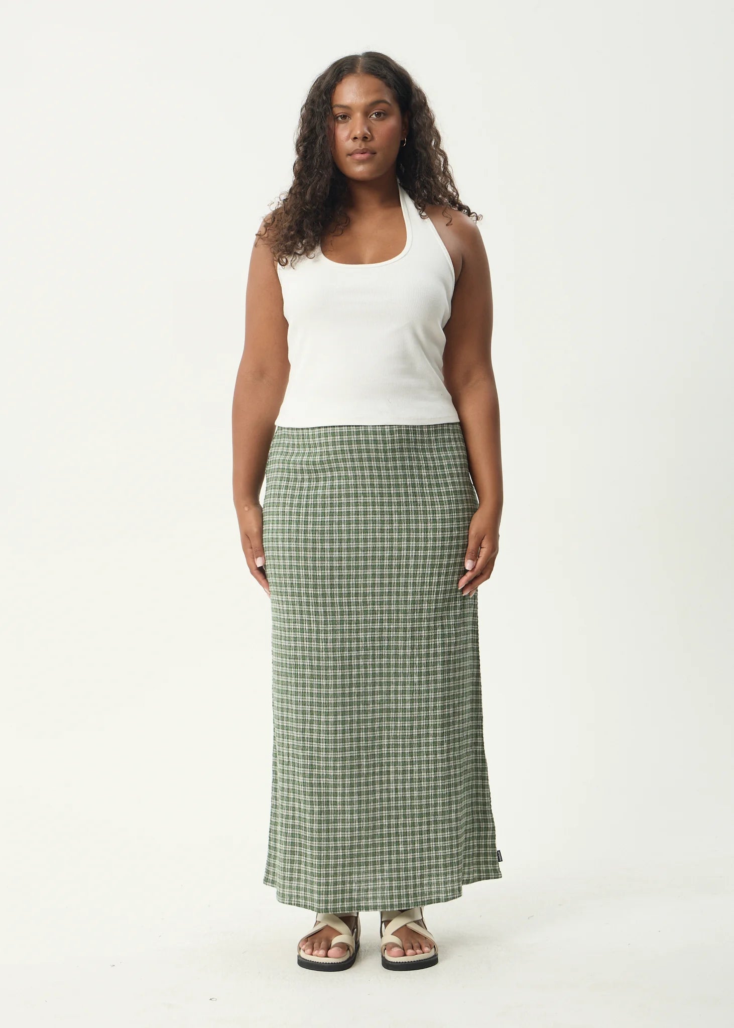 Base Seersucker Maxi Skirt - Deep Green Check