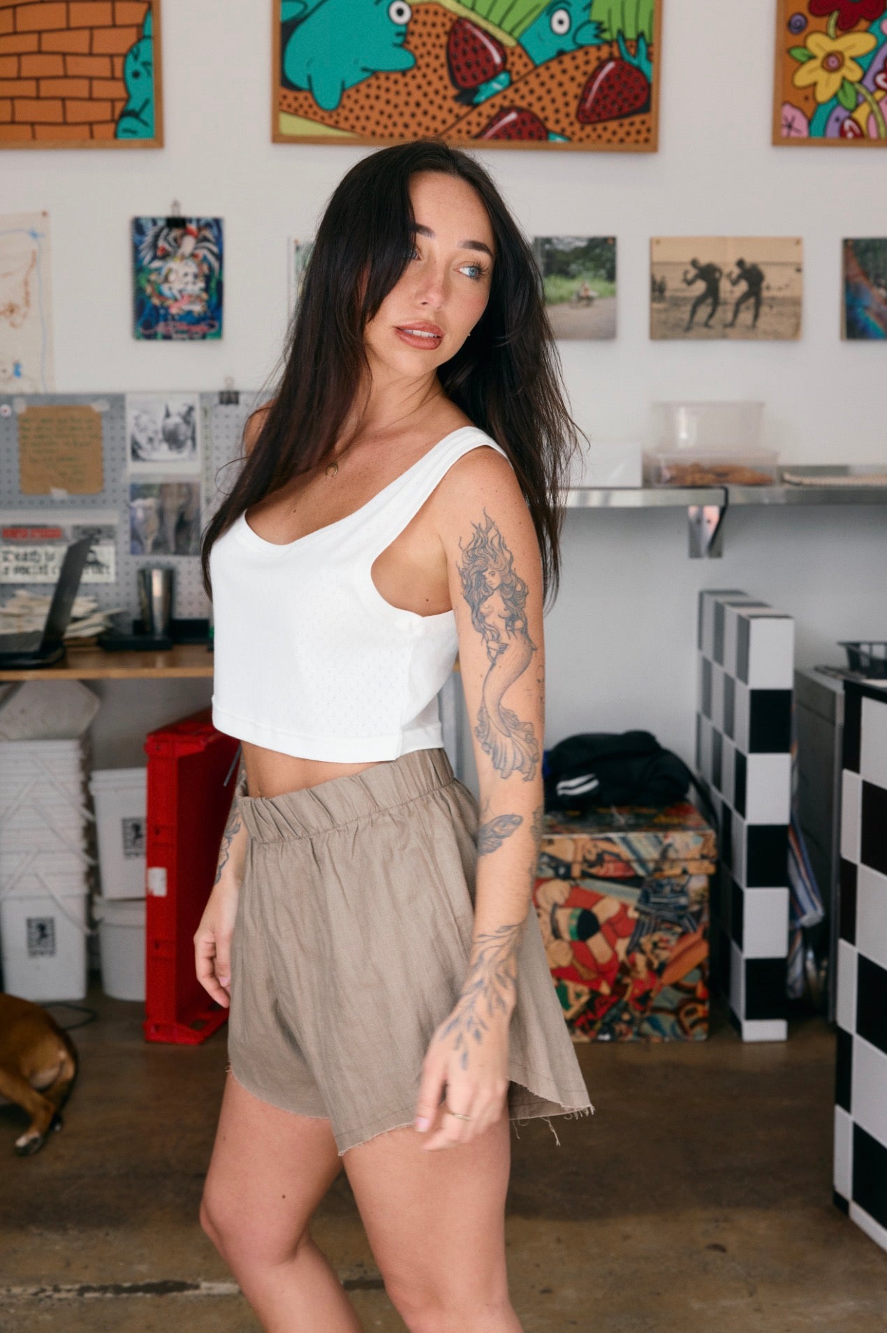 A Soho Bestseller! The Raw Short your go-to short, with a thick elastic waist band and flattering raw hem.