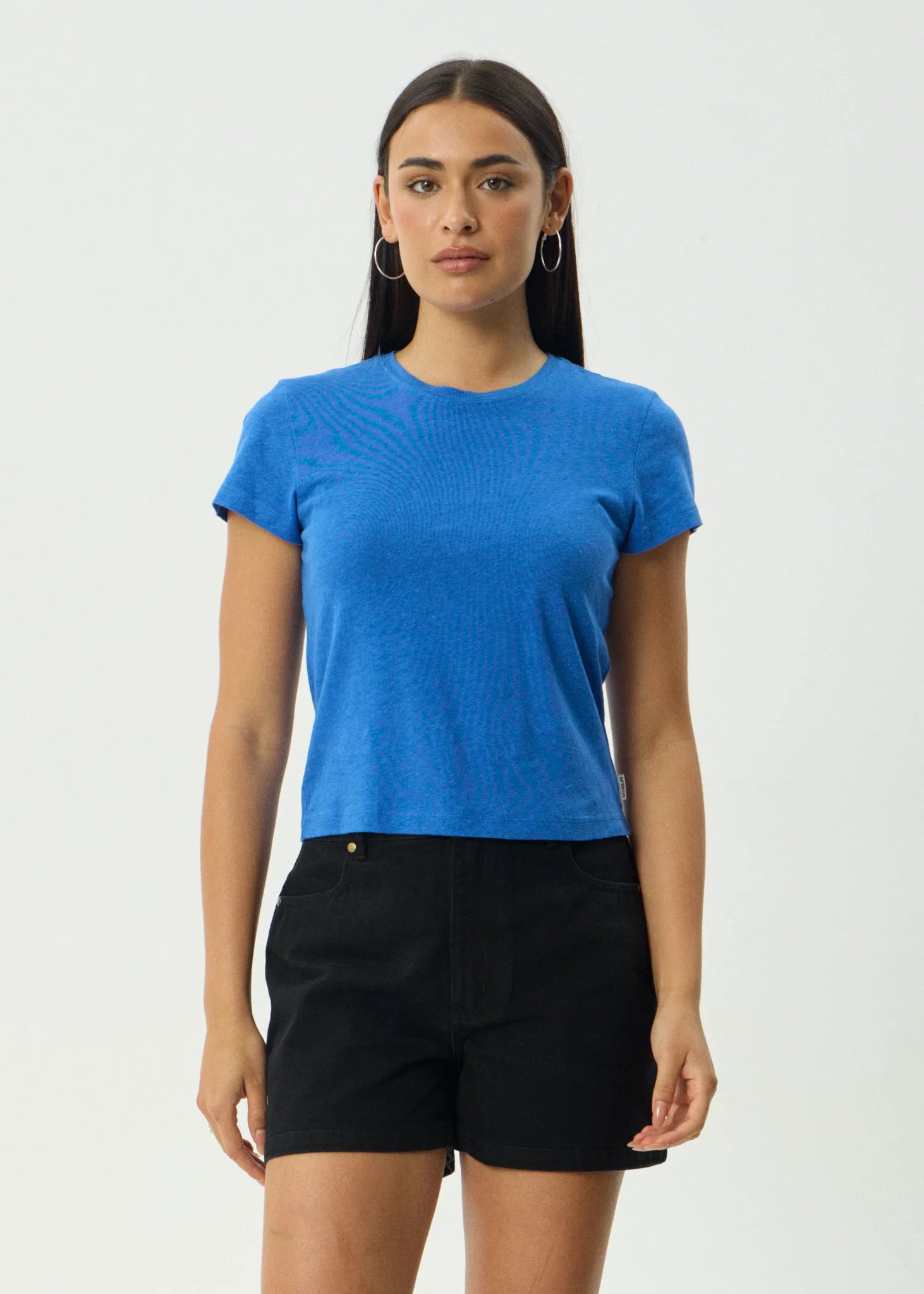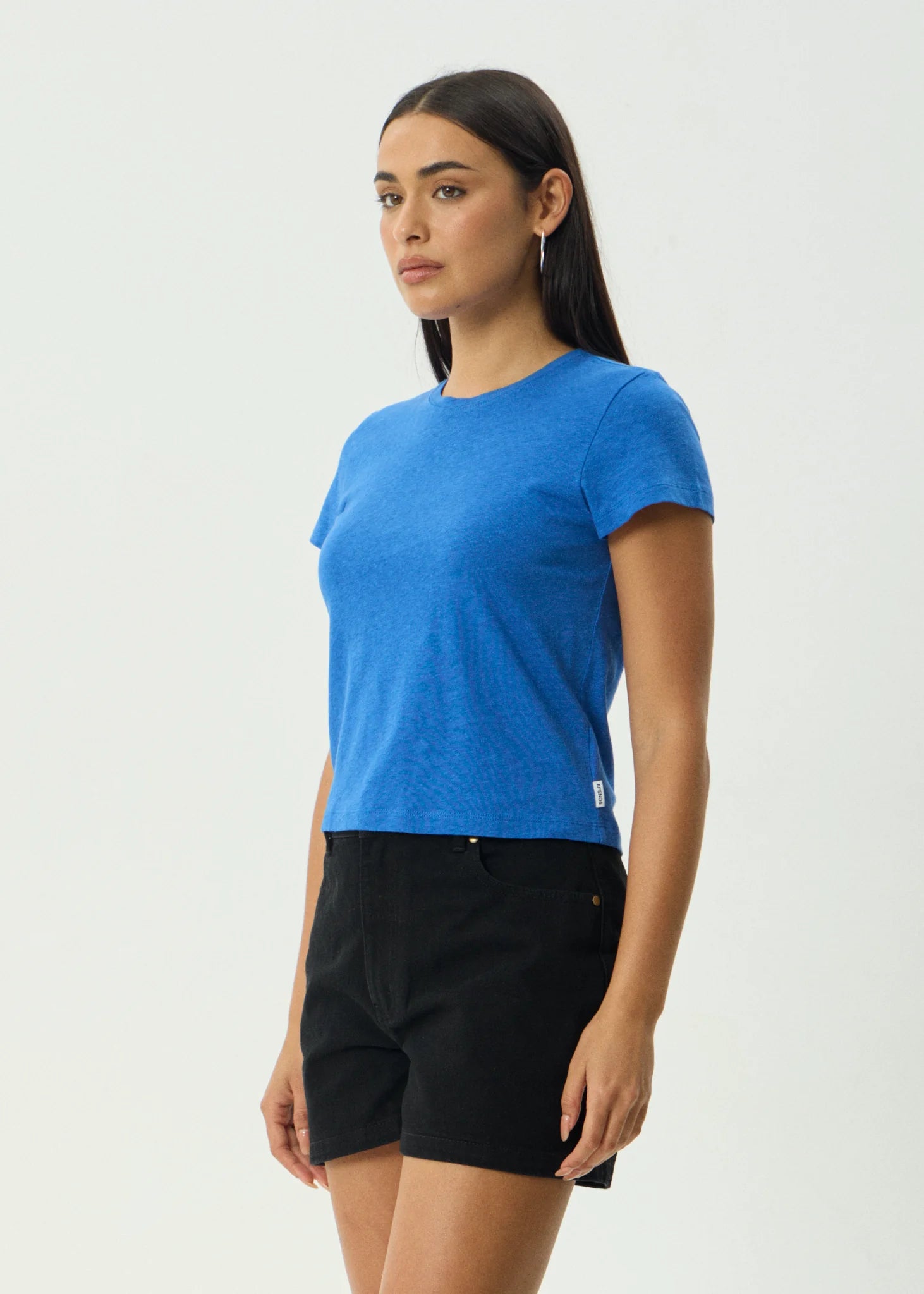 Carmen say hello to your new staple baby tee. Comfort and durability come first in this one; crafted from our hemp cotton blend jersey, this tee has a heavyweight design to have on hand for years. Our beloved baby tee silhouette offers a snug and slightly cropped shape in a variety of classic colours to wear on heavy rotation.
