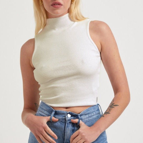 This tank is Iconic by name and iconic by nature. Our eco-friendly blend of recycled poly and hemp rib offers a slight stretch with a textured and heavyweight hand-feel. Our sleeveless design offers a fitted midline silhouette, flattering high cut neckline and raw-edged hem. In a duo of everyday colours, it pairs perfectly with anything high-waisted.