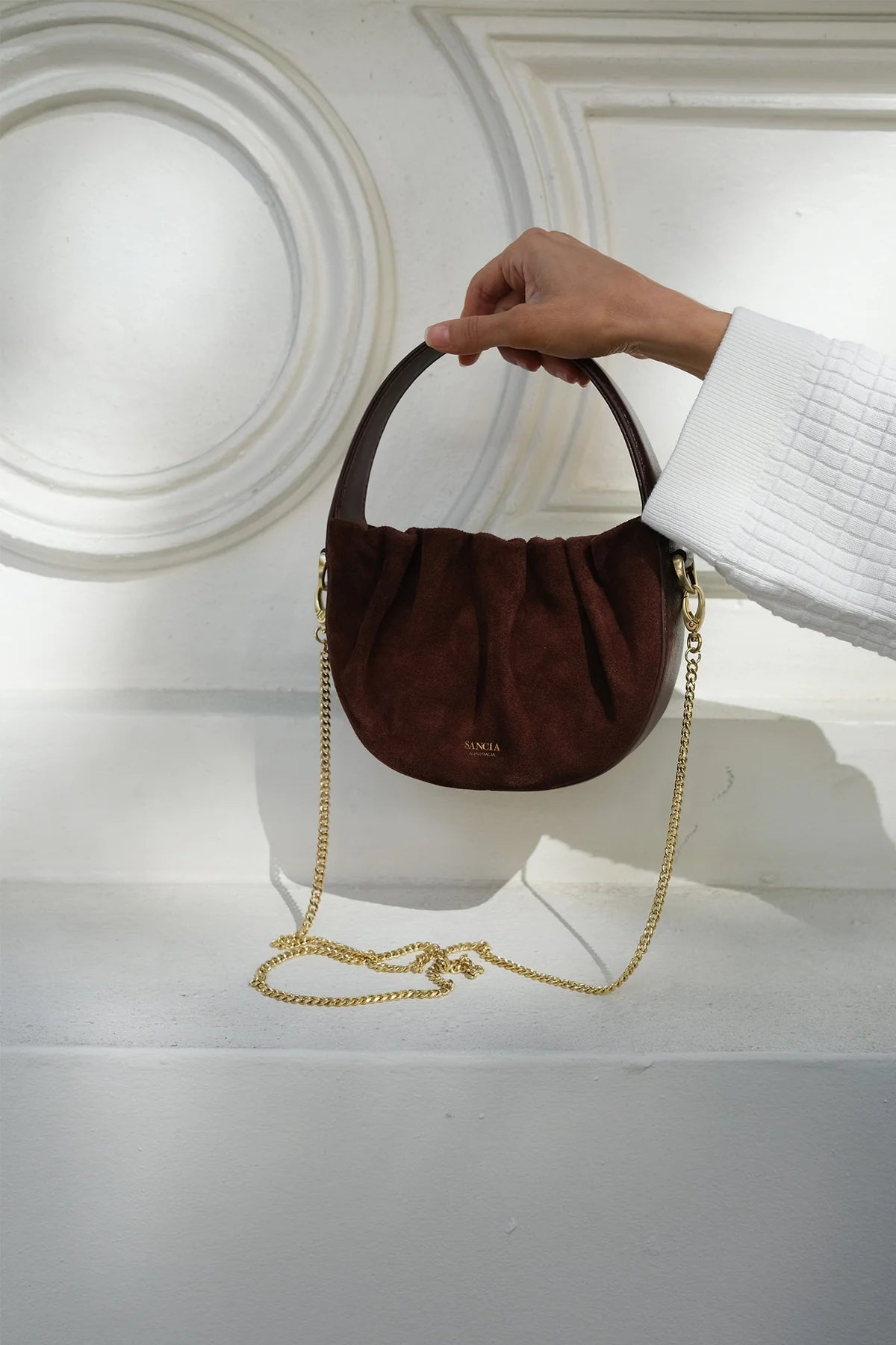 - Brushed gold custom SANCIA hardware